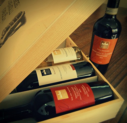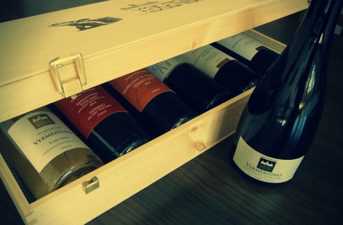 - Confezione in legno da 4 o 6 bottiglie da 0,75 litri (come quelle nelle foto)